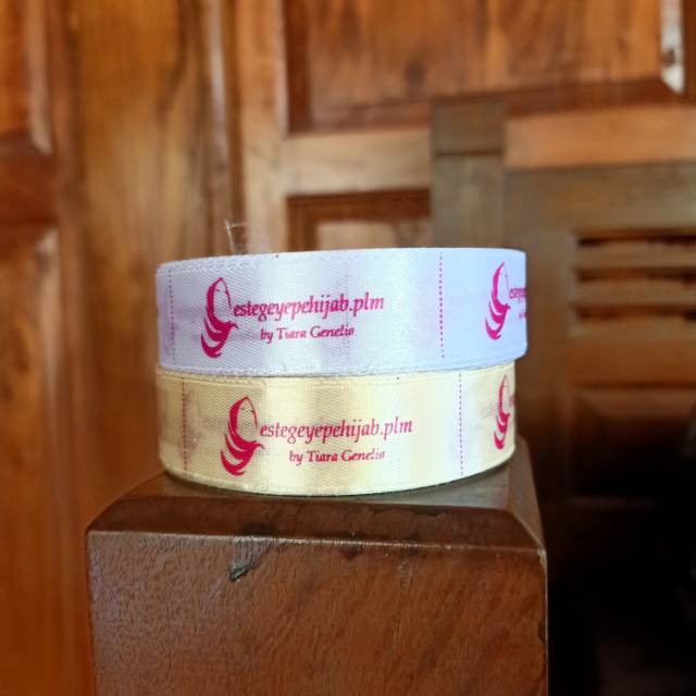 Label pita bahan satin lebar 2 cm,warna bisa pilih,desain bisa custom.