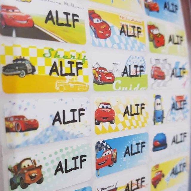Bisa ditempel di buku tulis,tempat pensil,botol minum,kotak makan,crayon,&peralatan sekolah anak lainnya..dijamin ga ketuker dgn teman nya