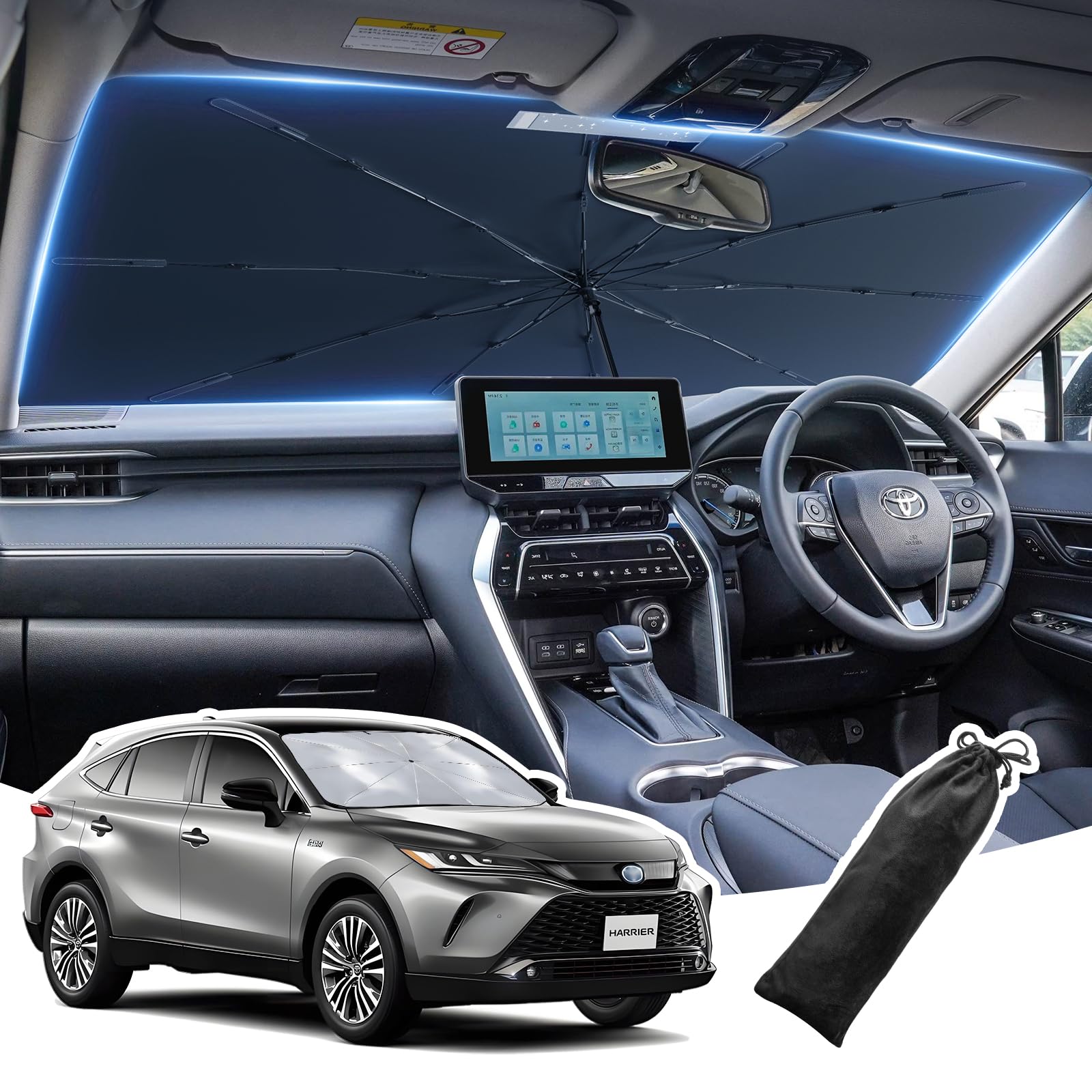 LANGBEAN Солнцезащитный козырек для Toyota Harrier 80 2025 Улучшенный автомобильный козырек на лобовое стекло Harrier 80 С вырезом под зеркало заднего вида Усиленный Десять слоев Теплоизоляция Стекловолокно Сгибаемый