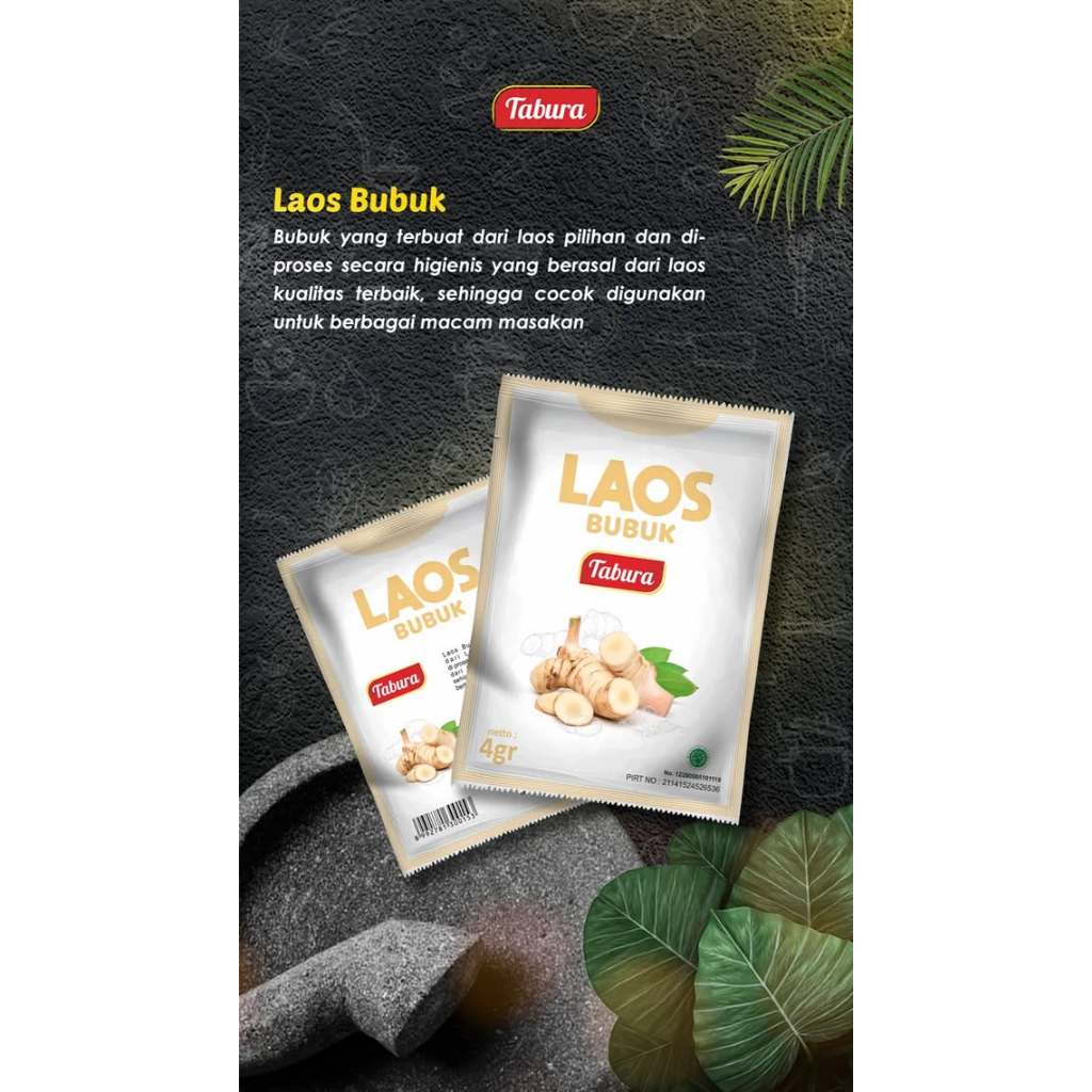 1 sachet berisi 4g Laos Bubuk Tabura. Terbuat dari Laos pilihan yang cocok untuk berbagai macam masakan.