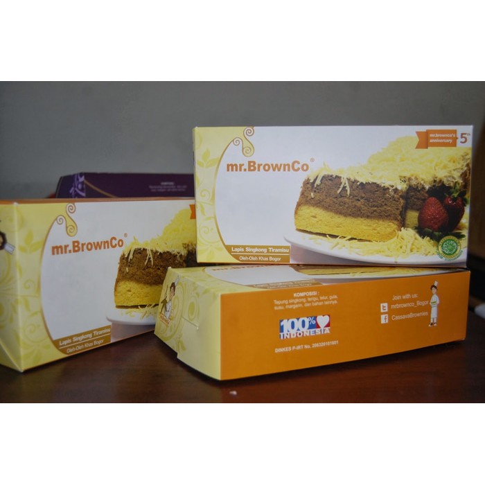 mr.BrownCo menyediakan oleh - oleh Khas Bogor dari Tepung Singkong dan Talas. Berkembangnya kuliner di kota Bogor semakin menambah ragam jajanan dan oleh - oleh khas pangan lokal. mr.BrownCo salah satu pelopor dengan mengkreasikan bahan lokal dari tepung singkong menjadi brownies yang legit dan lembut. Dengan varian produk seperti Brownies Kukus, Brownies Panggang dan Lapis Singkong Tiramisu.