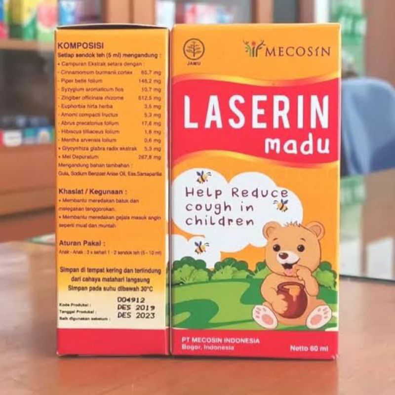 Laserin Madu merupakan obat tradisional yang diformulasikan dari sari-sari tumbuhan berkhasiat obat yang ada di indonesia. Berfungsi untuk meredakan batuk, melegakan pernafasan serta mengatasi gejala masuk angin pada anak-anak. Kombinasi dengan madu membuat rasa obat herbal Laserin menjadi manis dan disukai oleh anak-anak.