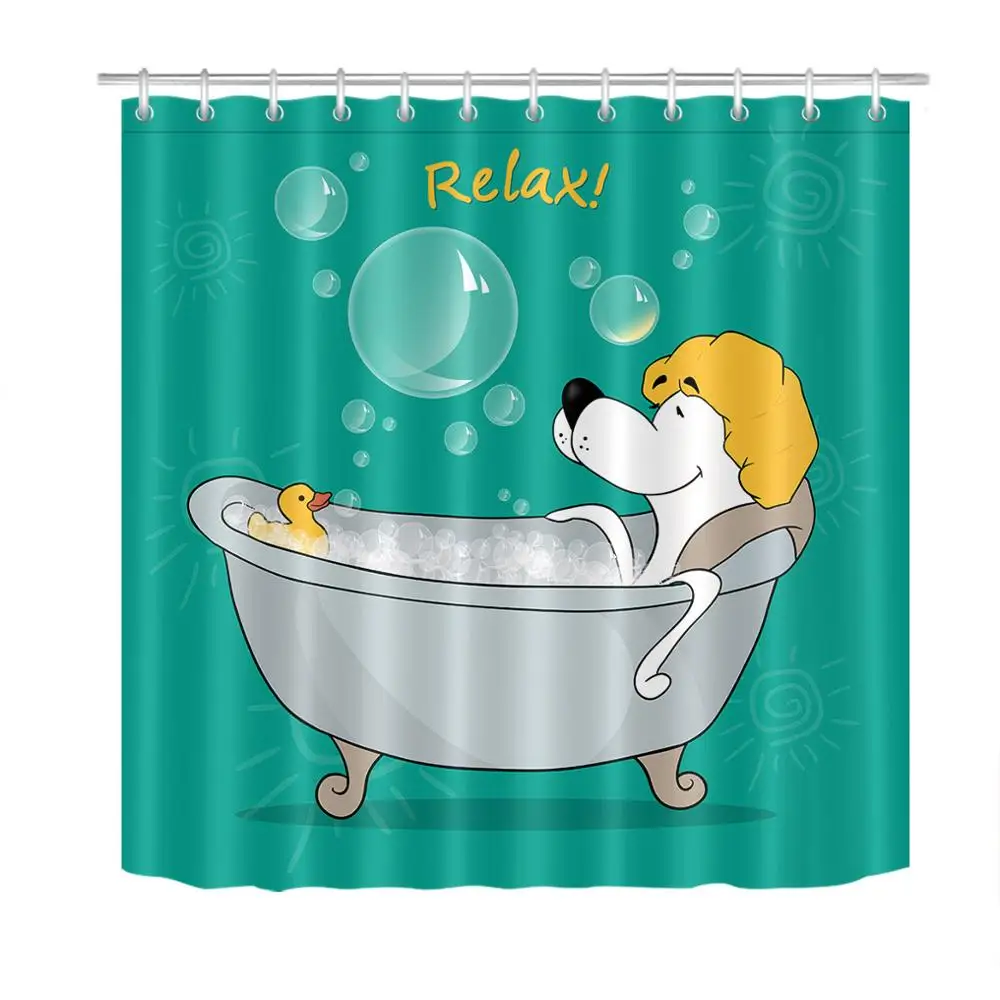 LB забавная собачка в йоге, эластичная занавеска для душа, занавеска для ванной, очень длинная Водонепроницаемая Полиэстеровая ткань для дек...