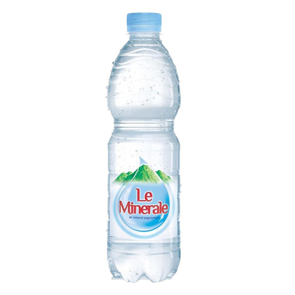 Le minerale air minum dalam kemasan. Air mineral pegunungan, dibotolkan langsung di sumbernya.