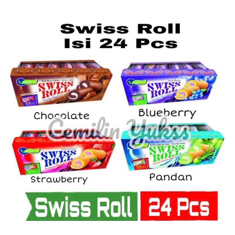 LE Swizzlef Swiss Roll isi 24 Bolu Swiss Roll Rasa Blueberry Coconut Strawbery Coklat Swiss Roll