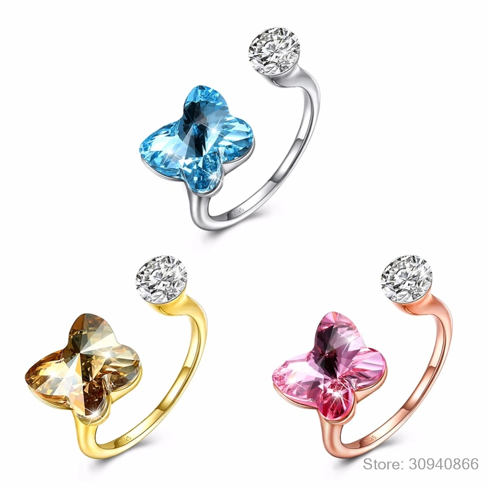 LEKANI кристаллами позолоченное женское кольцо с бабочкой, модные 925 серебро класса люкс с изменяемым размером романтическое кольцо, ювелирно...