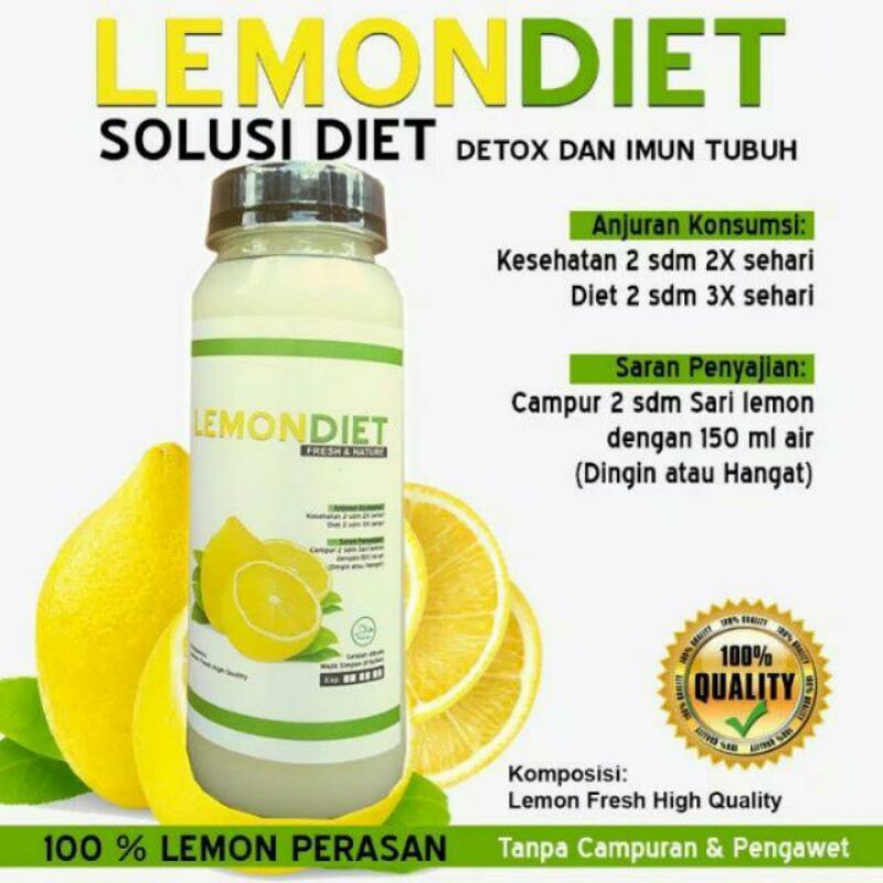 LEMON DIET ini terbuat dari asli sari lemon perasan tanpa campuran dan bahan pengawet apapun.
