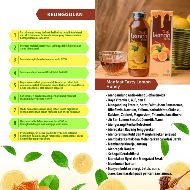 1. Terbuat dari bahan terbaik ekstrak lemon dan madu murni