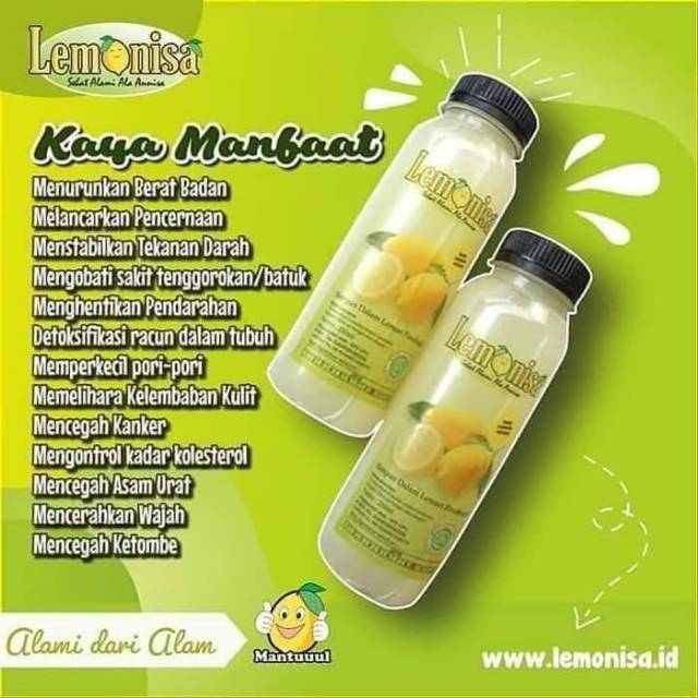 1botol lemonisa berisi 250ml, setara dg 1,25kg buah lemon (bisa untuk pemakaian 1-2minggu)