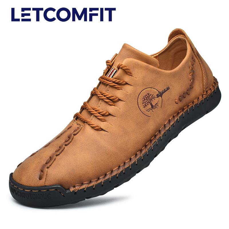 LETCOMFIT Мужские туфли ручной работы, легкие лоферы в винтажном стиле, прошитые синие, нескользящая повседневная обувь для платья, деловая обувь слипоны 46
