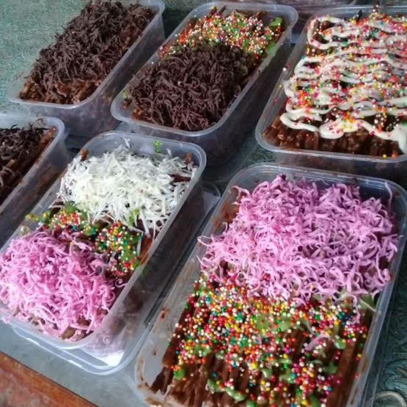 makanan lidi berbalut coklat dan taburi toping