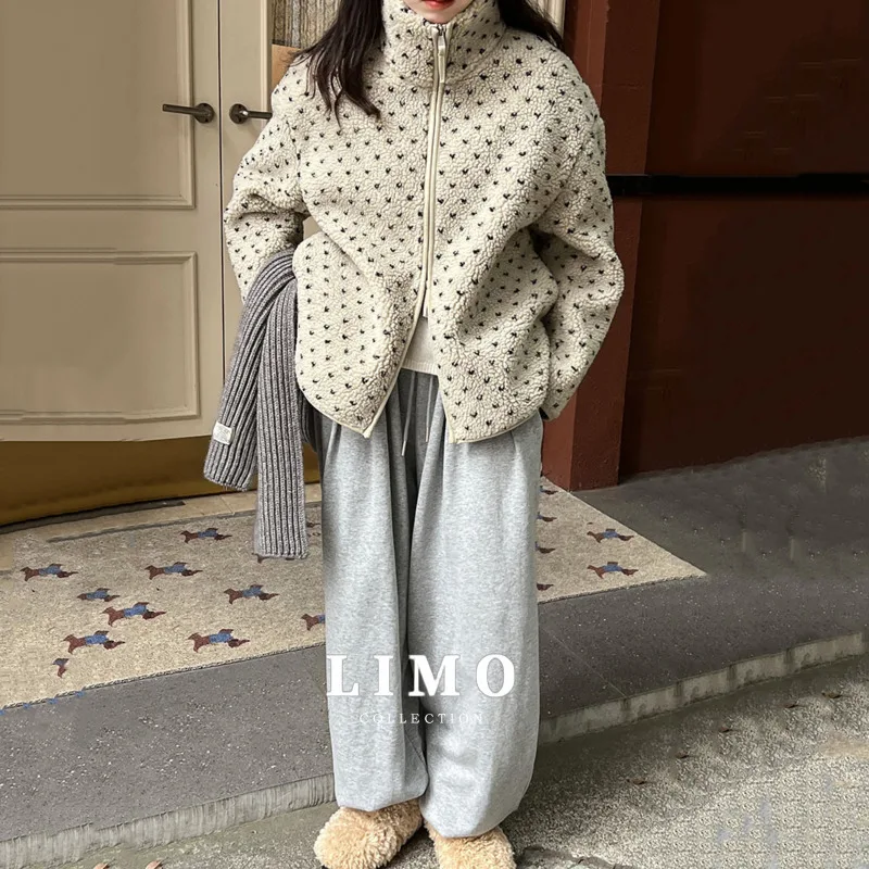 LIMO корейский стиль из овечьей шерсти в горошек с воротником-стойкой, теплая женская зимняя новая куртка с двойной молнией, элегантная и удобная