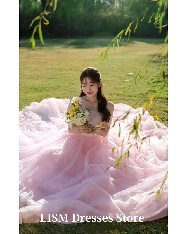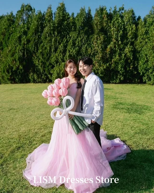 LISM Розовые милые корейские вечерние платья трапециевидной формы из шелкового тюля Длинные элегантные платья для выпускного вечера Фотосессия 저체레스 индивидуальные