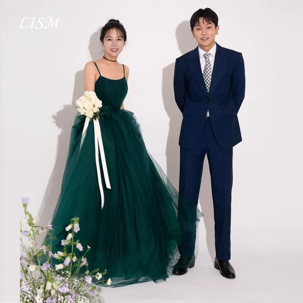 LISM Черновато-зеленые вечерние платья трапециевидной формы без бретелек, шелковый тюль, сказочные элегантные платья для выпускного вечера, индивидуальные фотосессии 저체레스