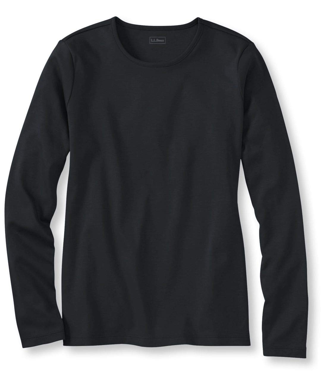 LL Bean Пима Хлопок Длинный Круглый Вырез Размер США 0VH0910002 Женская Футболка, Рукав, Вырез, Посадка, Стандартная, Маленький, Черный, чёрный