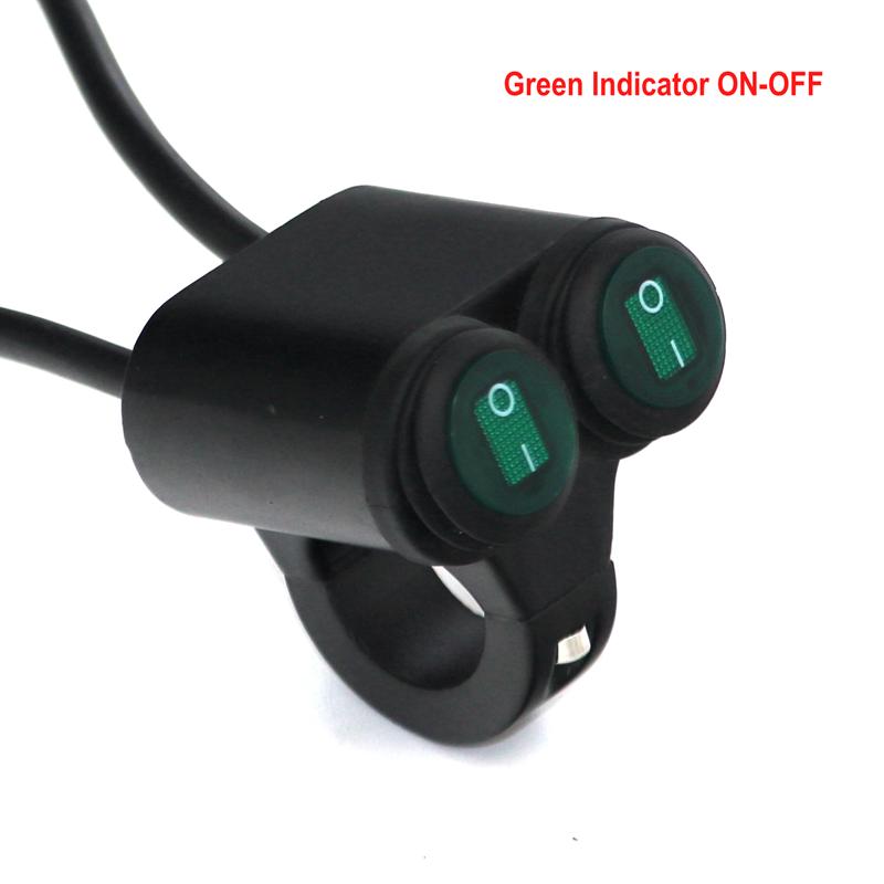 LMoDri переключатель из алюминиевого сплава для мотоцикла, 7/8 дюйма, ремонт руля, водонепроницаемый, 2 переключателя управления, универсальный переключатель светового индикатора Green ONOFF