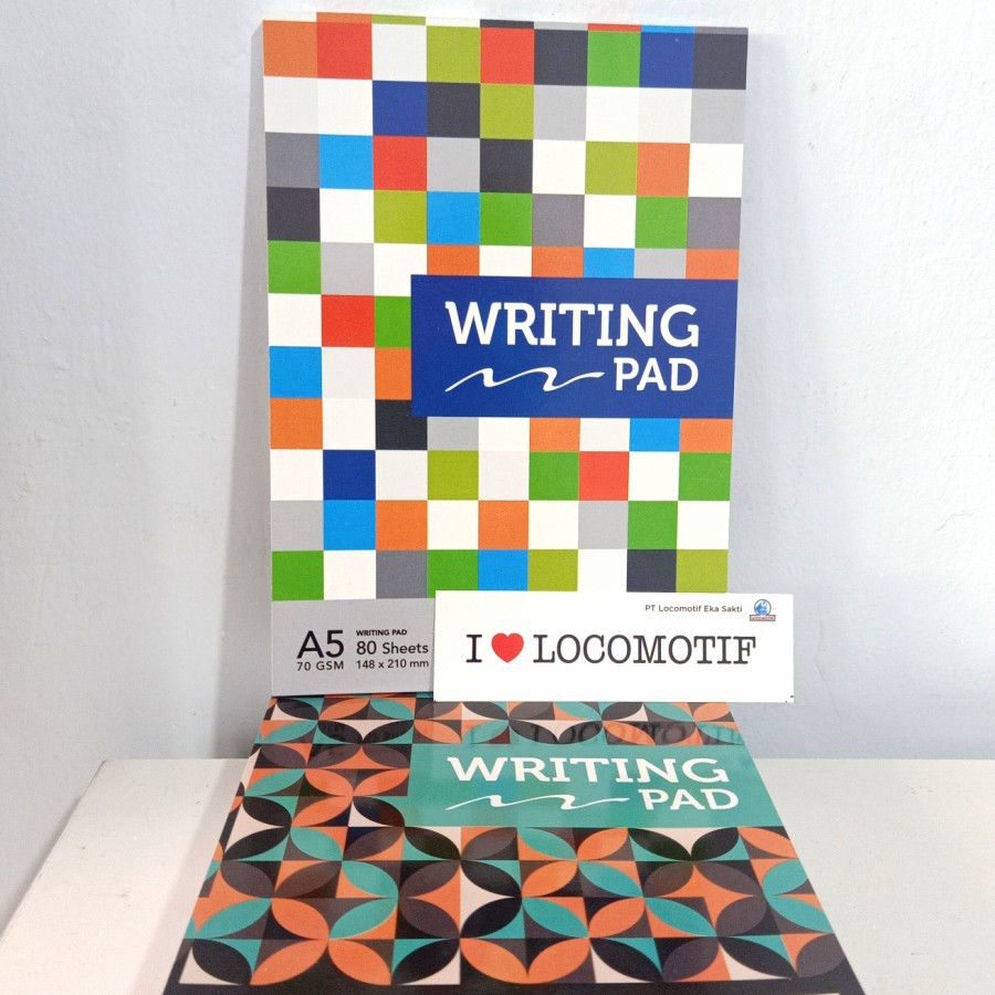 Writing Pad ukuran A5 merk locomotif, dengan kertas polos