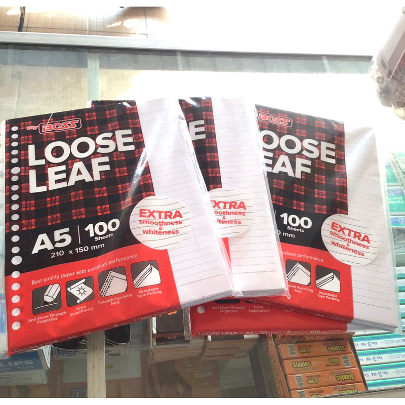 LOOSE LEAF A5 (100 Sheets) 210 X 150 mm. LOOSE LEAF B5 (50 Sheets) 257.5 X 182 mm.