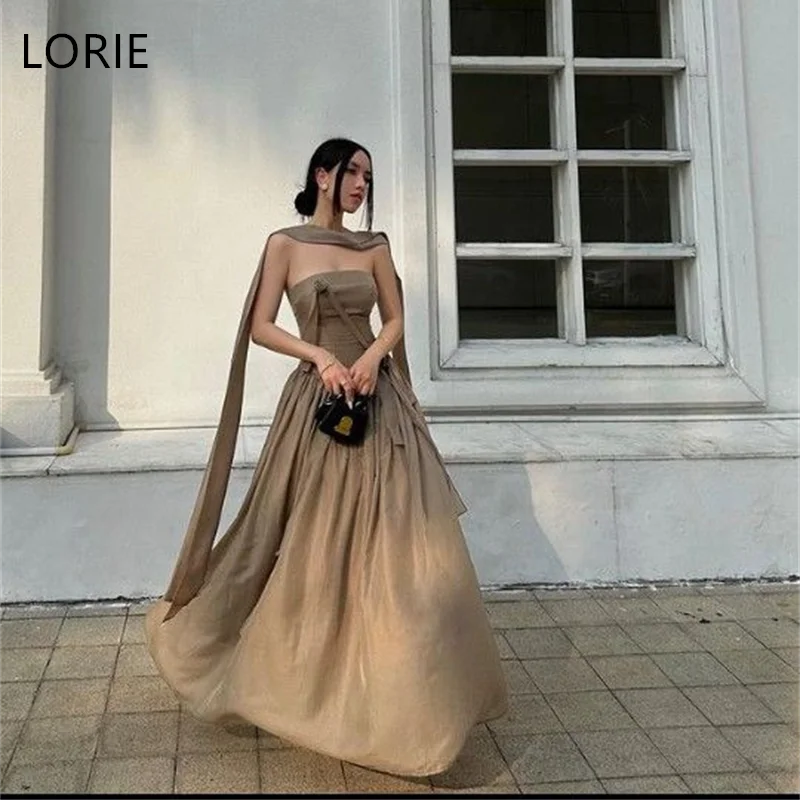 LORIE Ленты Вечерние платья трапециевидной формы без бретелек со складками на молнии сзади с цветами Вечернее платье для выпускного вечера длиной до пола, платья для выпускного вечера по индивидуальному заказу