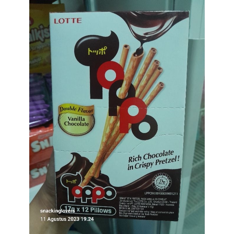 biskuit stik rasa vanilla dengan isian coklat di dalam nya