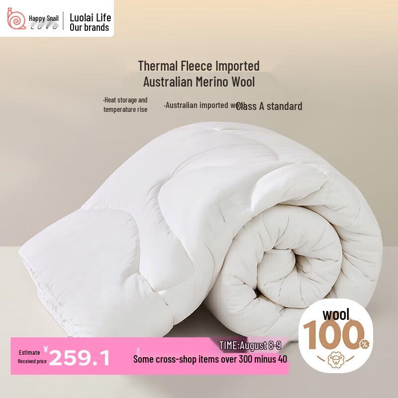 LOVO 100% Australian Wool Spring/Autumn Quilt 200x230cm