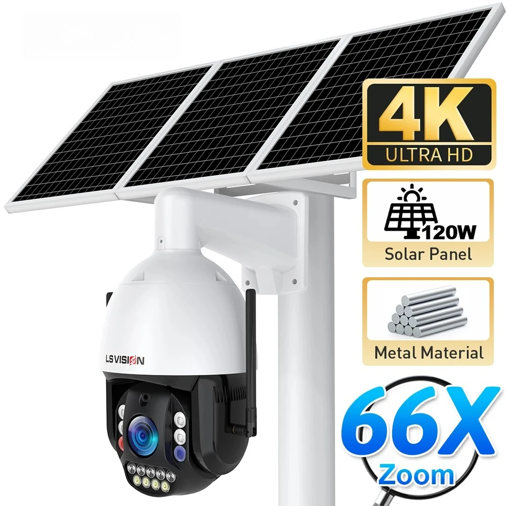 LS VISION 4G 8MP 66X Zoom Intelligence Alarm Outdoor And Heat Resistant Solar Power Security Camera System