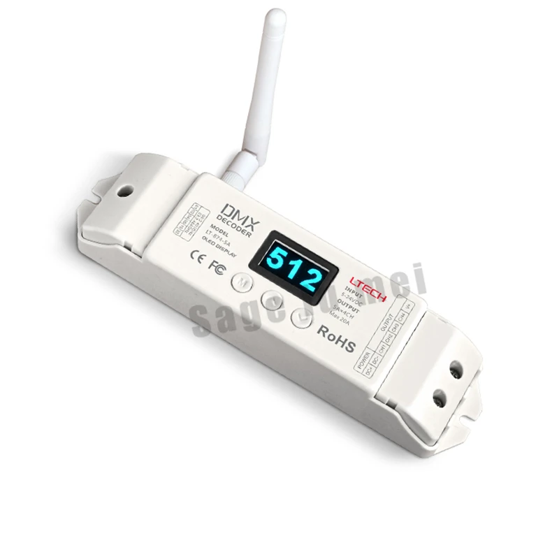 LT-874-5A;4CH Wireless 2.4GHZ CV DMX512 Decoder Controller;DC5V-24VDC input;5A*4CH MAX 20A output With OLED Screen for led lamp