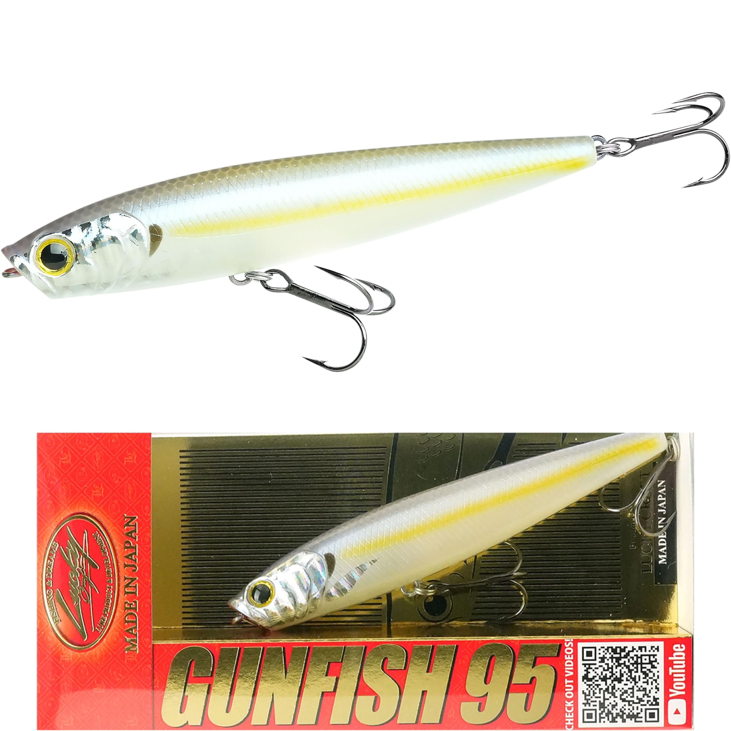 LUCKY CRAFT Gunfish 95NF Поверхностная плавающая приманка для ловли окуня с чашеобразной головкой, пресноводная форель и окунь, рыболовный ящик 380 Серебристая щека, шартрезный шед