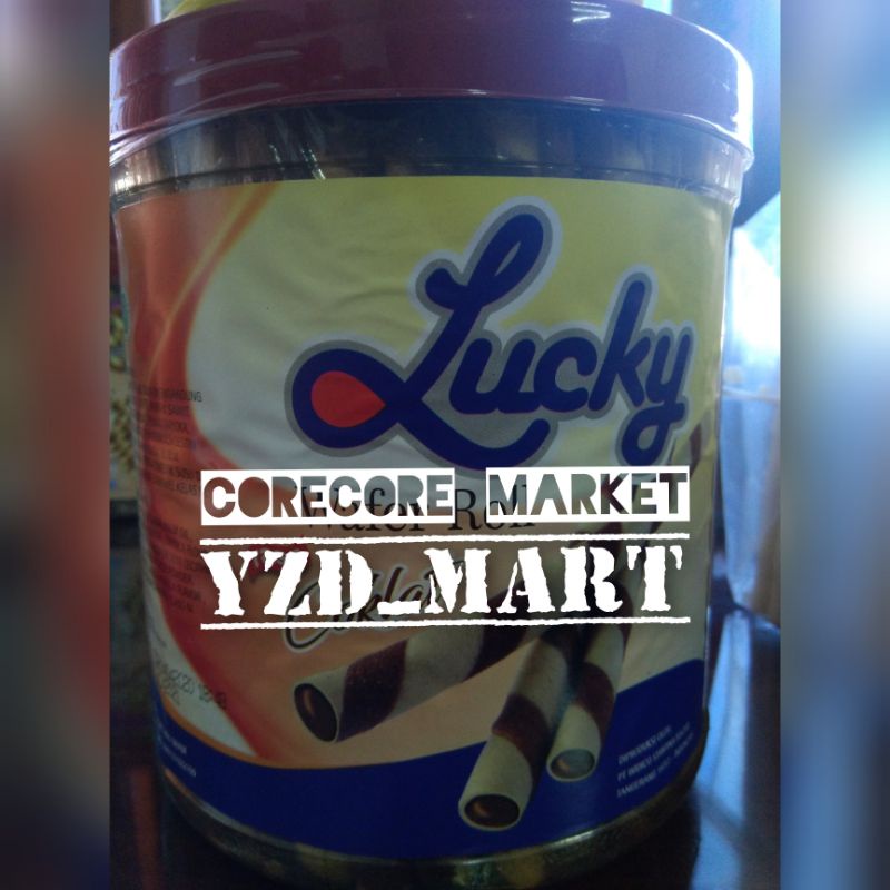 Lucky Wafer Roll (Astor), kemasan Toples, cocok untuk menemani teman minum teh atau kopi dikala senggang atau santai bersama orang terkasih..