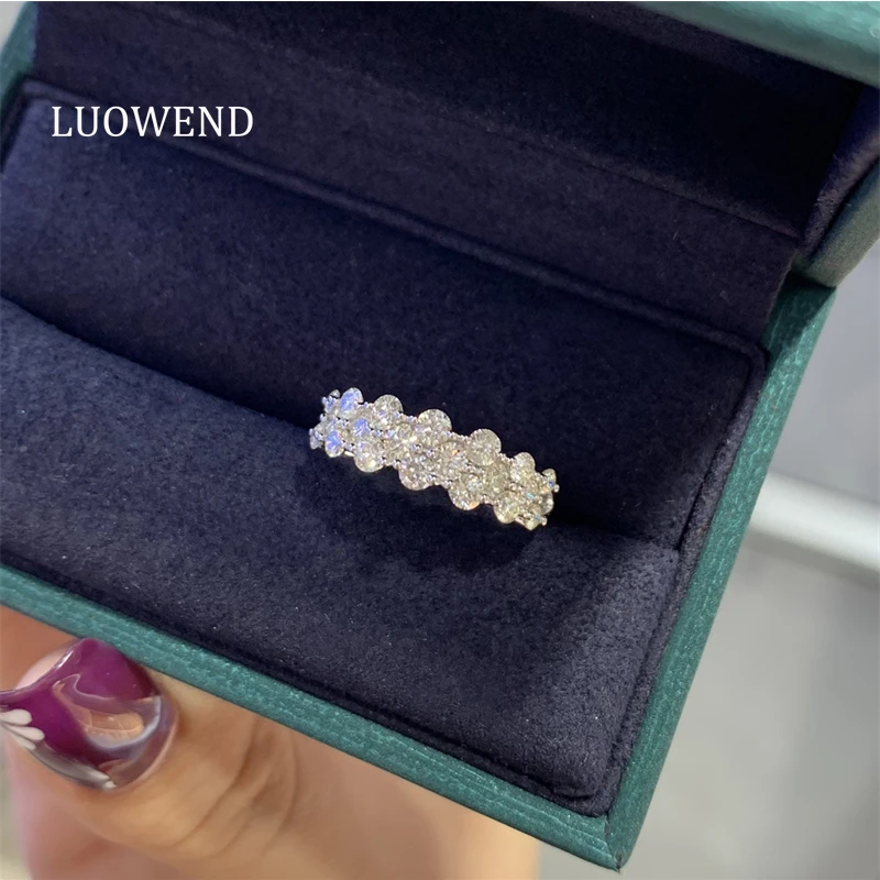 LUOWEND 18K Белое Золото AU750 обручальное кольцо из натурального золота кольца с натуральным бриллиантом роскошные женские свадебные ювелирные и...