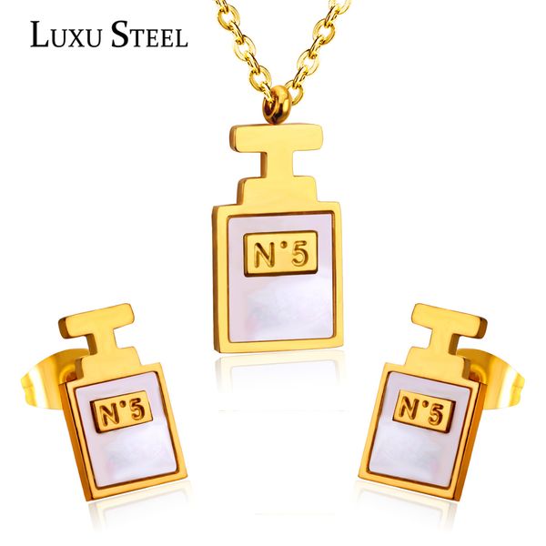 LUXUSTEEL милый стиль резьба No. 5 геометрия Shell ожерелье серьги наборы мода из нержавеющей стали ювелирные наборы бижутерия