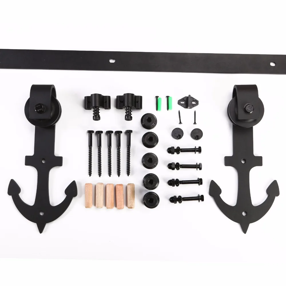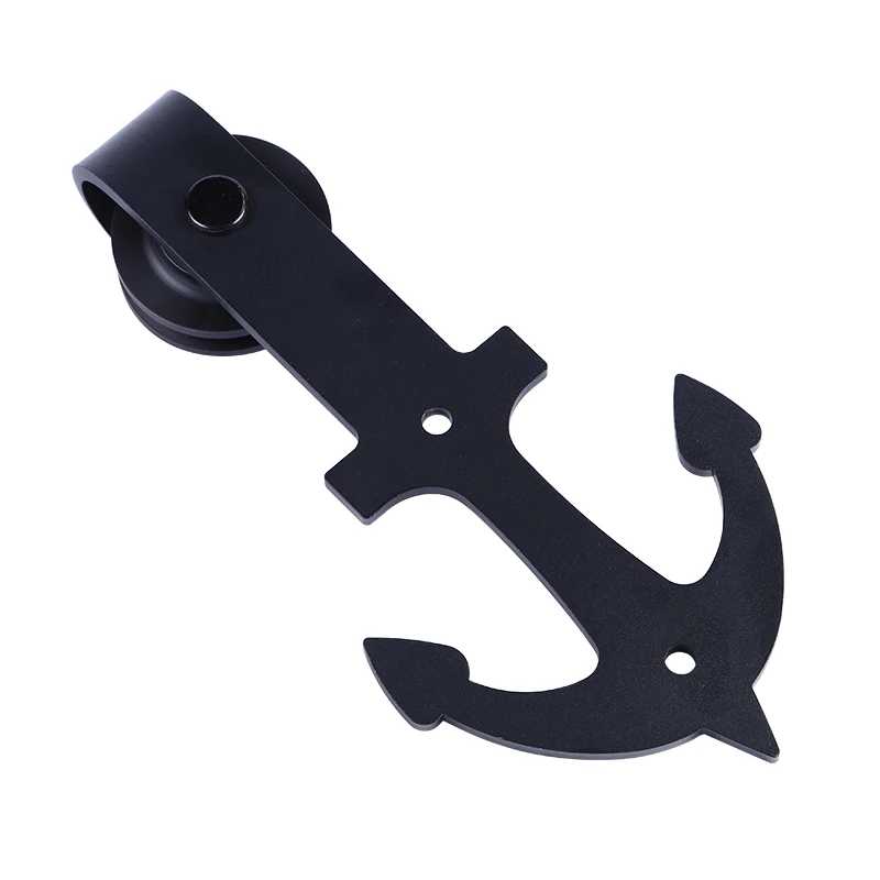 LWZH стальная дверь для раздвижной створки в античном стиле, вешалка для крепления на верхушке, комплект оборудования, черный якорь в форме для одной двери