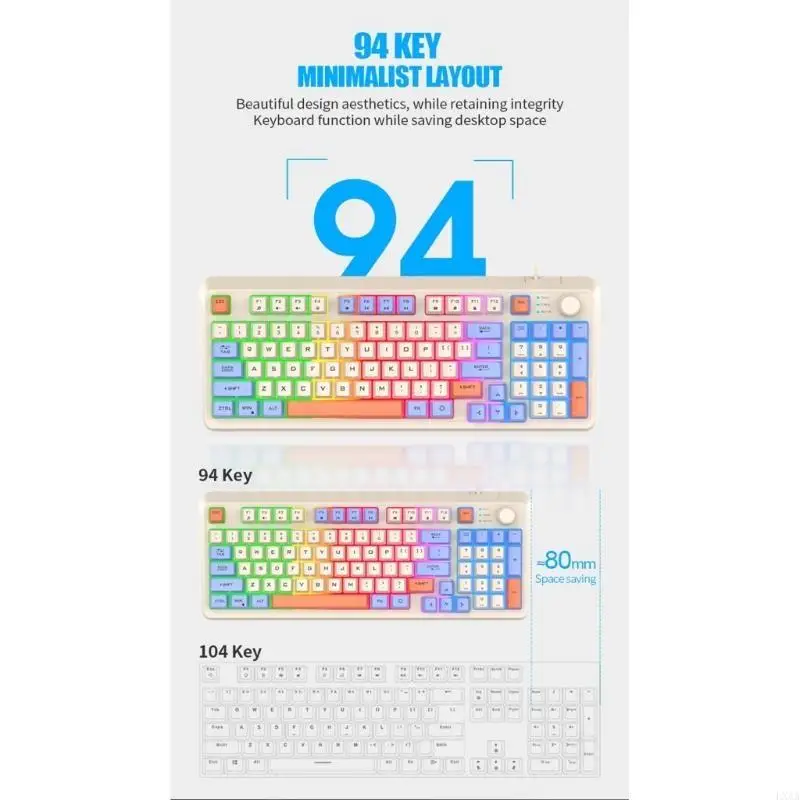 LXAA, 94 клавиши, минималистичная раскладка, игровая клавиатура и мышь, комбинированная красочная подсветка, 3-цветная USB с