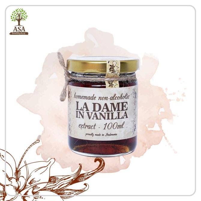 La Dame in Vanilla Extract merupakan ekstrak vanilla non alkohol yang bersertifikasi murni, alami dan bebas gula yang dibuat dari biji vanili organik asli. Vanila asli memiliki lebih dari 250 senyawa rasa dan telah terbukti sebagai anti inflamasi yang kuat dan pendorong kinerja mental.