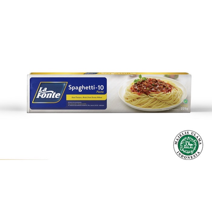 La Fonte Spaghetti adalah pasta berbentuk panjang (long pasta) yang paling sering digunakan untuk memasak pasta. Terbuat dari Semolina gandum durum pilihan. Pasta ini bisa disajikan dengan hampir semua jenis saus. Contohnya saus tomat, krim susu, tumisan, dengan daging, sayuran dan ikan. La Fonte Spaghetti kemasan 225gr berdiameter lebih kecil dibandingkan dengan La Fonte Spaghetti 11 kemasan 450gr.