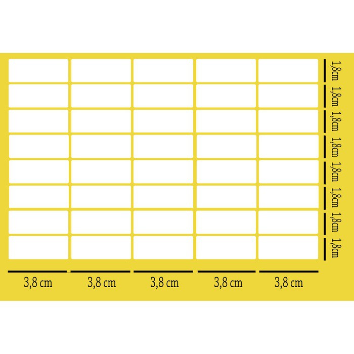 Label 108 .1 pack isi 10 lembar. 1 lembar isi 40 label. Total 1pack isi 400 label/sticker. Ukuran label 3.8cm x 1.8cm.