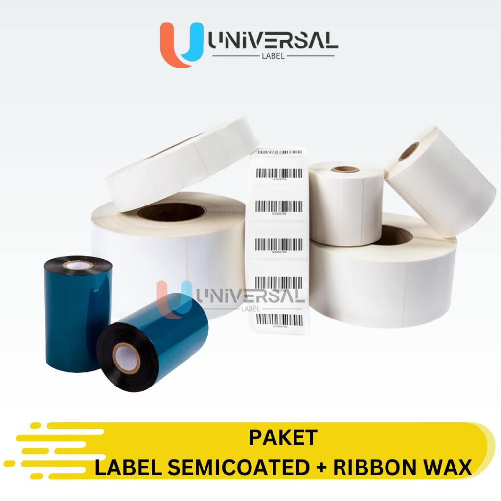 Label Semicoated plus Ribbon Wax | Paket Label Barcode Semicoated Include Ribbon Wax