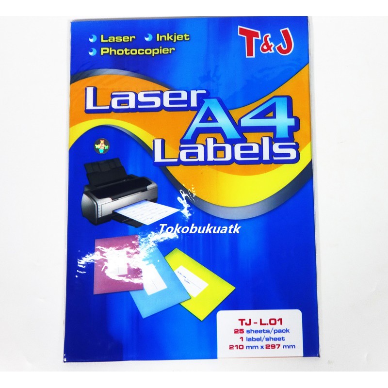 TJ-L01 Laser A4 Labels - merupakan label sticker berukuran A4 yang dapat dicetak menggunakan laser print atau inkjet print. Cocok digunakan untuk printer : Lase, Inkjet, Photocopier. Cocok untuk mencetak label sticker berukuran besar hingga A4.
