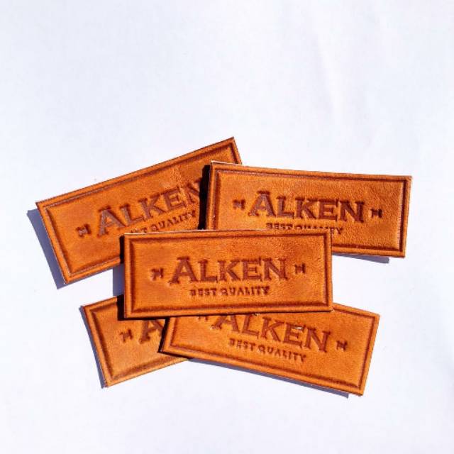 Label kulit sapi vegtan ukuran 2x5cm proses embos