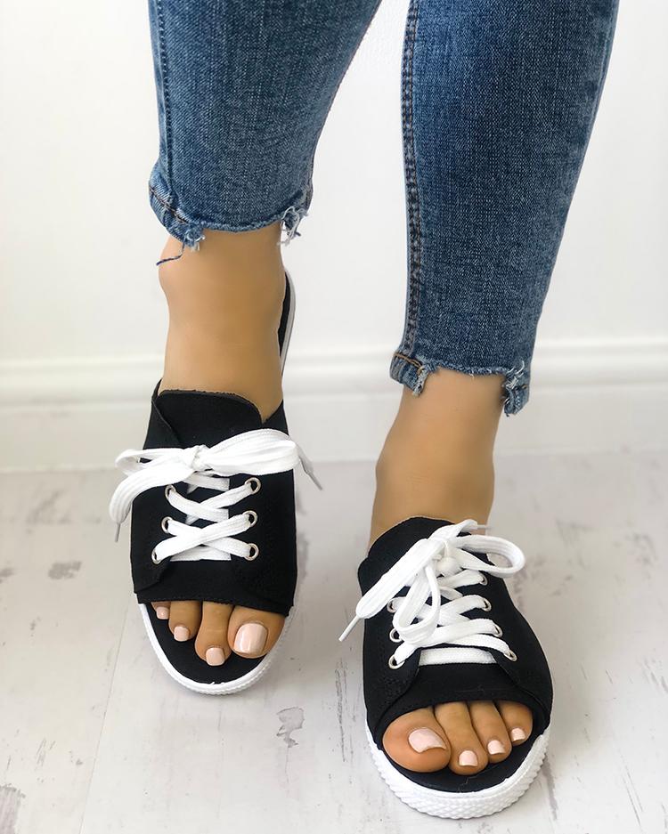 Lace-Up Open Toe Platform Slipper