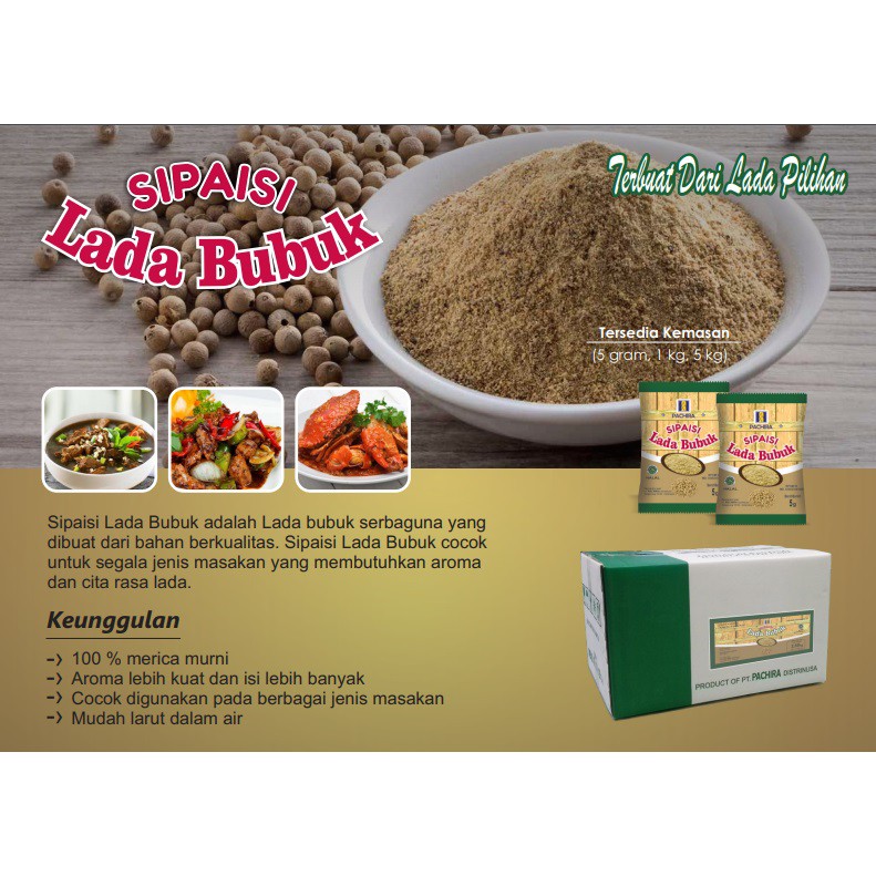Lada bubuk SIAP PAKAI ini merupakan Lada/merica bubuk serbaguna yg terbuat dari bahan berkualitas.