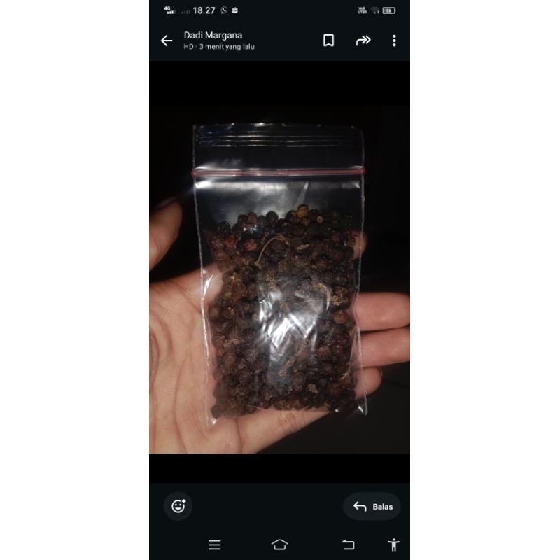 Lada hitam utuh beraroma menyengat, digunakan untuk pengobatan herbal dan bumbu masakan.