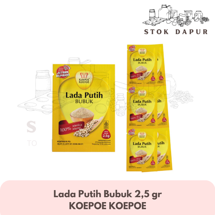 Nikmati cita rasa dan kualitas terbaik dari Lada Putih Bubuk Sachet 2,5 Gram (Renceng) dari Koepoe-Koepoe, pilihan sempurna untuk menyempurnakan hidangan Anda.