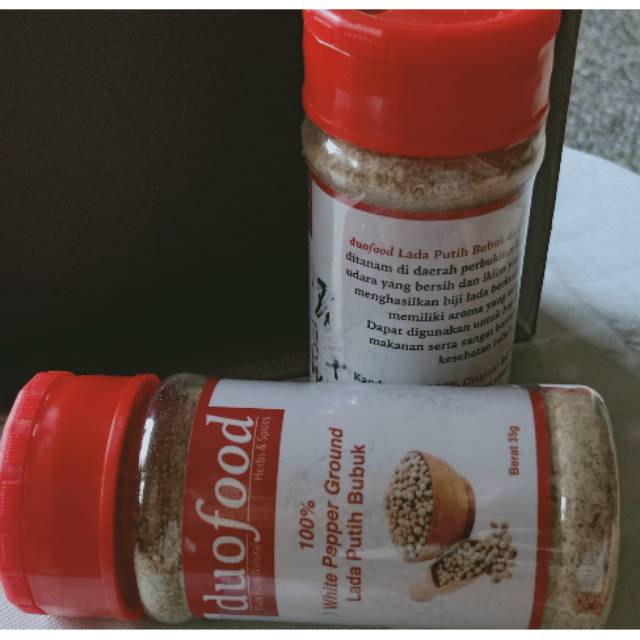 Duofood lada putih bubuk dari lada pilihan yang ditanam di daerah perbukitan Kalimantan dengan udara yang bersih dan iklim yang sesuai sehingga menghasilkan biji lada berkualitas terbaik dan memiliki aroma yang sangat khas.
