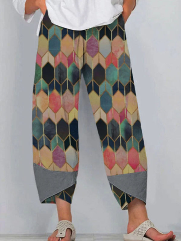 2023 New Summer Women Pants Casual Beachwear Loose Retro Bohemian High Waist Solid Straight Pants Printed Yoga Wide Leg Pants