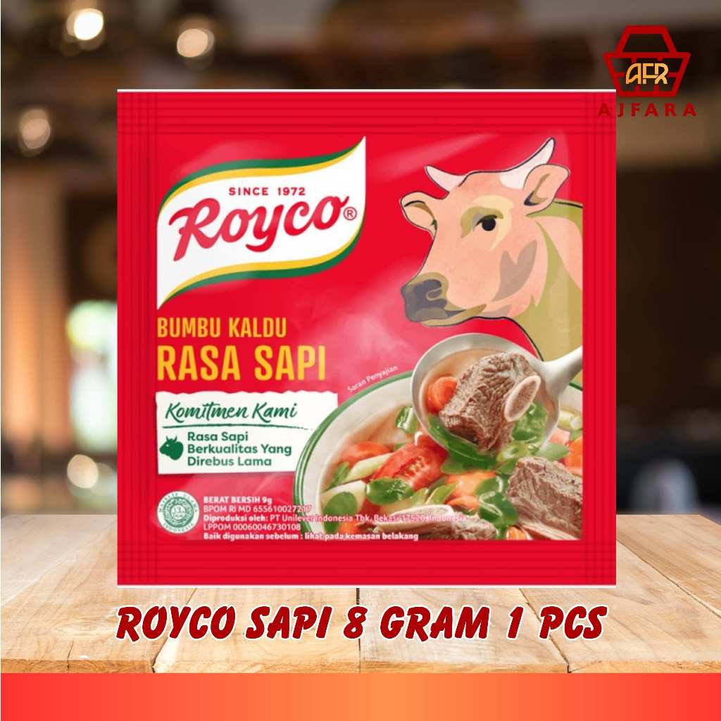 4. Royco Sapi Renceng 8g: Versi kecil dengan kemasan 8 gram, praktis untuk digunakan dalam satu kali memasak. Terdiri dari campuran rempah-rempah khusus yang akan memperkaya rasa pada masakan sapi.