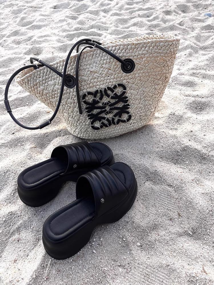 Lan Cabinet 2025 весна и лето одно слово, реплика ощущение наступить в дерьмо толстая подошва одно слово шлепанцы женские повседневные шлепанцы 40 чёрный