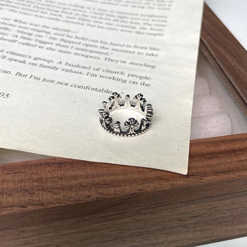Lan Zhi Кольцо из стерлингового серебра 925 пробы, не тускнеющее, в стиле ретро, с крестом, открытое, для женщин Adjustable Open