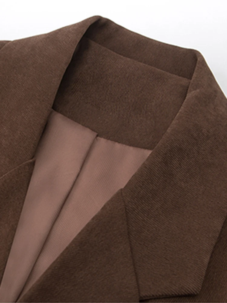 Lautaro Осень Зима Длинная Свободная Стильная Винтажная Коричневая Вельветовая Тренча для Женщин Роскошь Дизайнер Верхняя одежда Женщины Под...