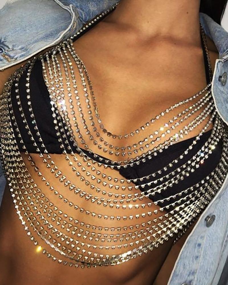 Layered Rhinestone Decor Body Chain, Gold